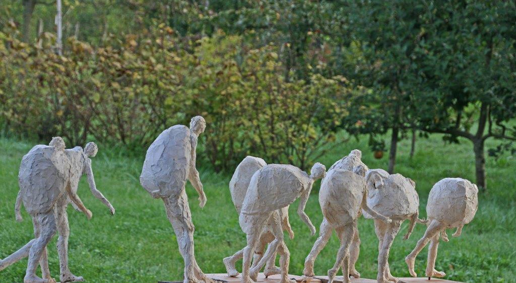 Je pratique la sculpture depuis une vingtaine d’année. La terre est ma « matière première » . J’ai eu ensuite la chance de découvrir l’univers du bronze, sa force, sa densité. A ces matériaux de prédilection s’est ajouté le fil pour dessiner dans l’espace et ainsi poursuivre mon travail sur le volume en recherchant le minimum de lignes nécessaires à la compréhension de la forme. Habituellement, ces 3 univers (terre/cire/fil) se complètent pour expérimenter des thèmes qui me sont chers :